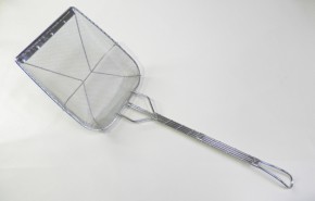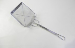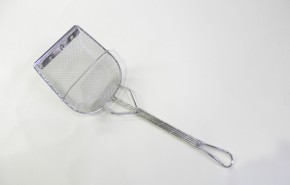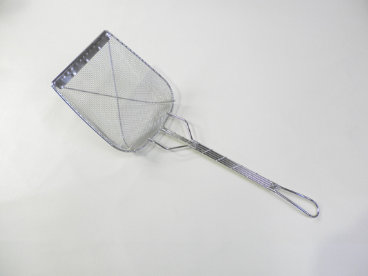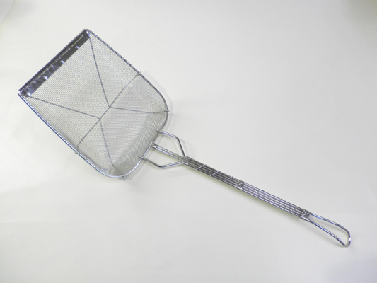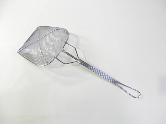揚げ物用調理のすくい網です。 一般的な形状ではありますが、網部と枠の溶接を通常の3倍も施し強度を高め耐久性をあげています。 *12メッシュ=約2mm目となります。